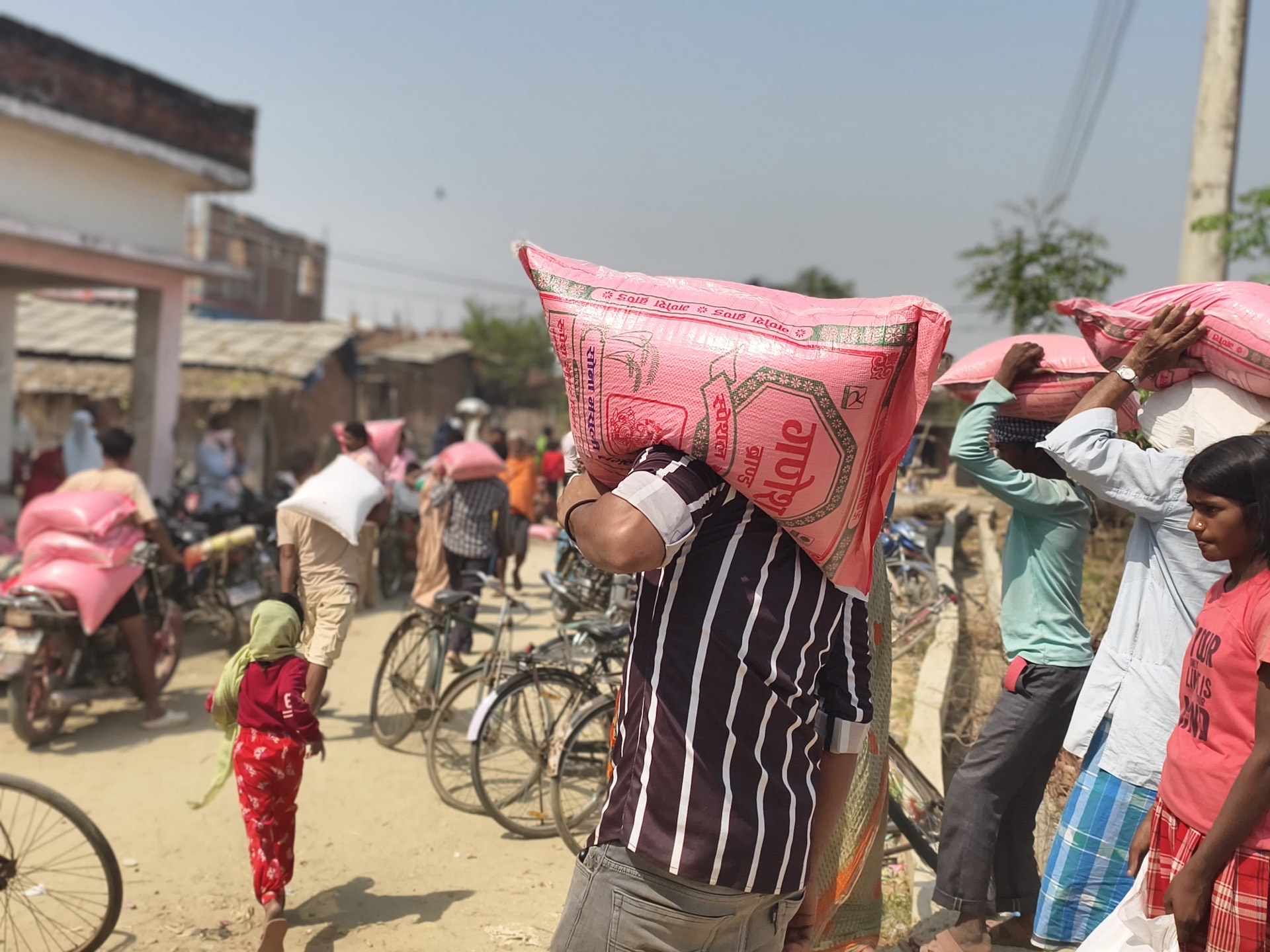 Distribution de nourriture aux familles dans le besoin, colis alimentaires et repas chauds.